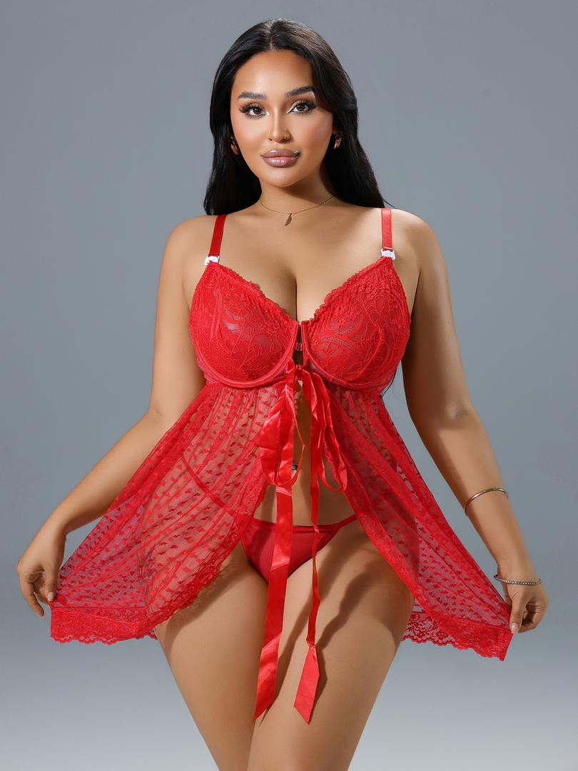 Czerwona Koronkowa Koszula Nocna Plus Size z Fiszbinami i Satynową Kokardą - XL