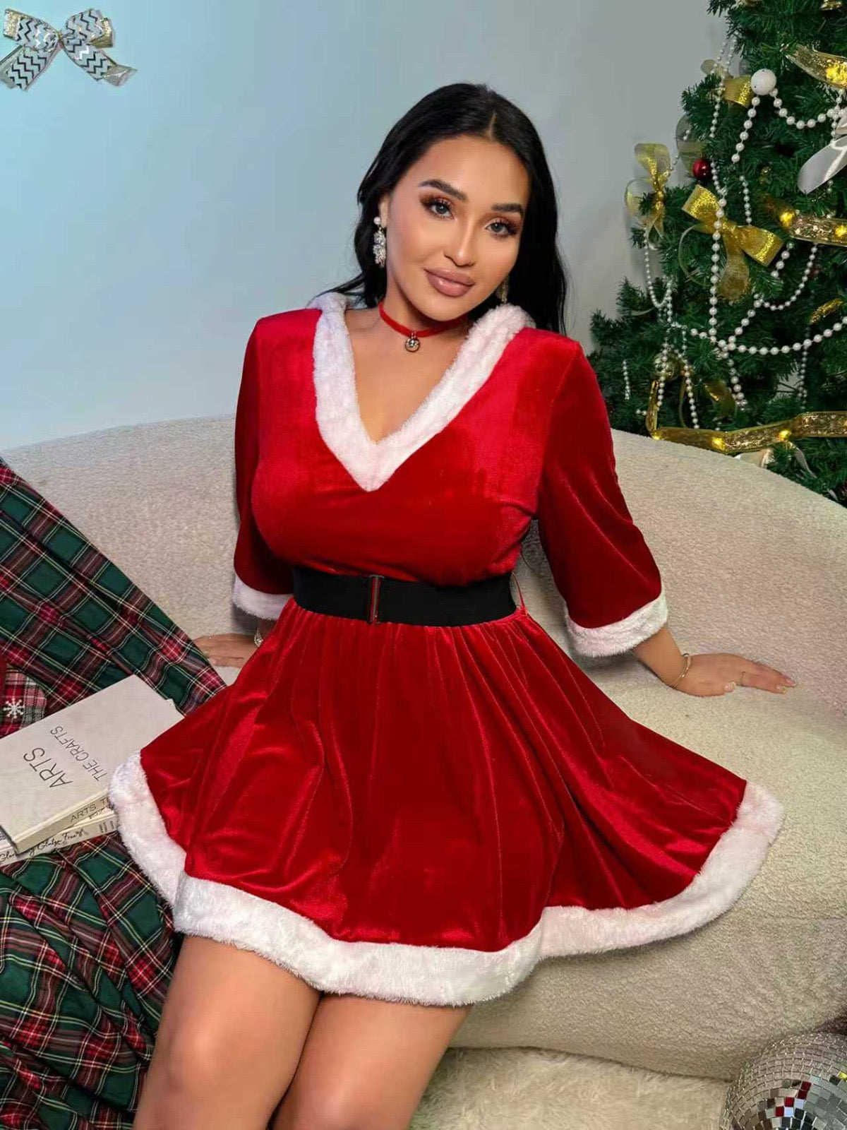 Poczuj Magię Świąt w Zmysłowym Wydaniu!   Przywitaj świąteczny czas w niezapomnianym stylu! Nasza aksamitna sukienka Mikołajki w rozmiarze plus...
